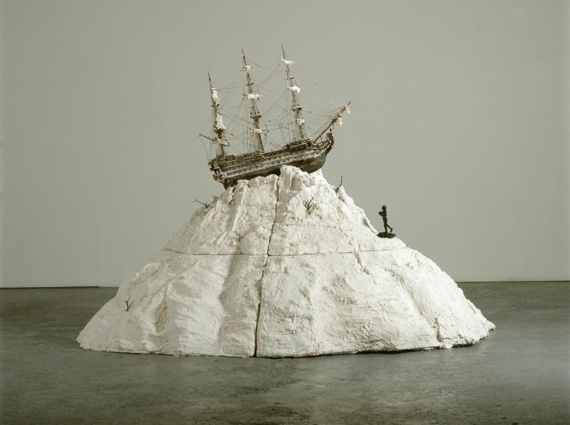Plaster, bronze, wood, boat, string, hemp, foam and plaster dust